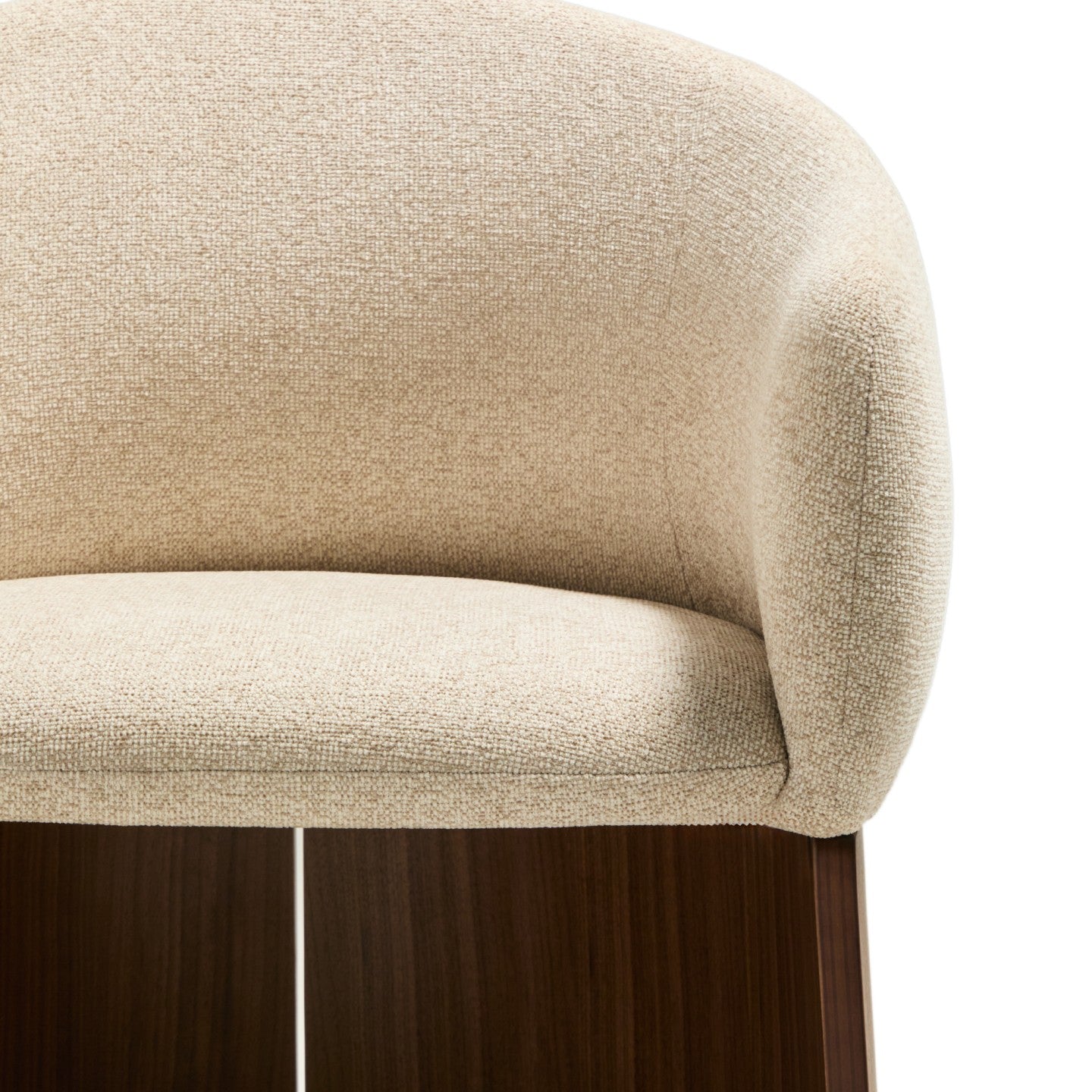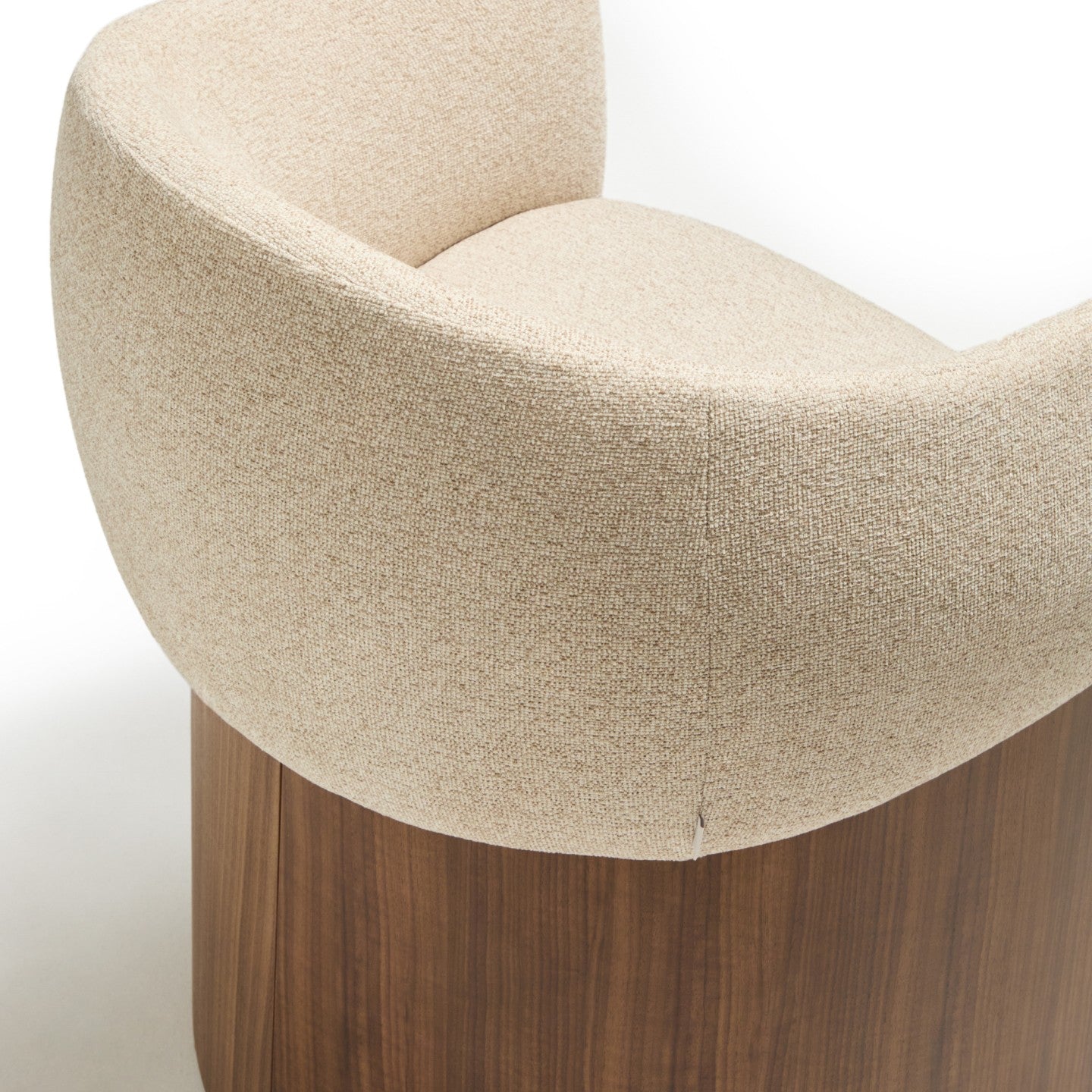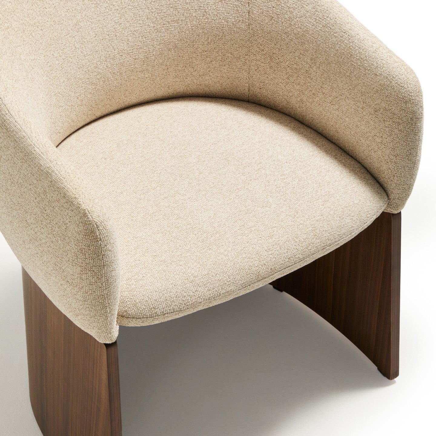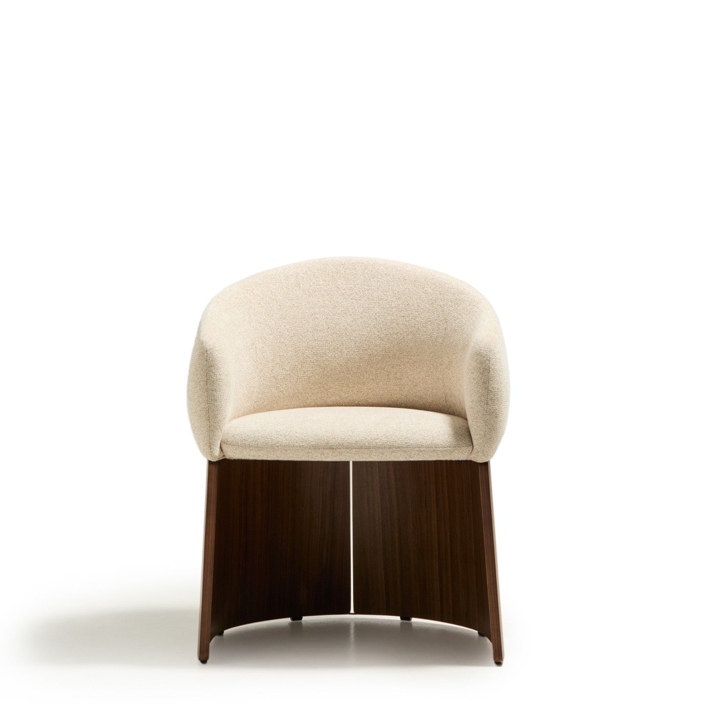 Dieser Stuhl besticht durch sein harmonisches Design mit einer breiten, bequemen Sitzfläche, die auf einem mit Nussbaumfurnier verkleideten Holzgestell ruht. Die matte Polyurethan-Oberfläche schützt das Material und verleiht dem Stuhl eine warme Ausstrahlung. Das Holz ist mit einer lückenlosen FSC™-100%-Rückverfolgbarkeitskette und einem Modell für verantwortungsvolle Waldbewirtschaftung zertifiziert.