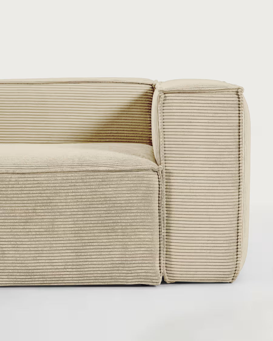 Das Sofa Blok vereint Eleganz und Funktionalität und fügt sich nahtlos in moderne Wohnräume ein. Es ist mit einem dicken Cordbezug mit besonders weicher Haptik bezogen und bietet eine einhüllende Textur. Darüber hinaus ist es äußerst abrieb- und lichtbeständig, was ihm eine außergewöhnliche Langlebigkeit verleiht – ideal für den täglichen Gebrauch und dafür, dass es seine Schönheit über viele Jahre hinweg bewahrt.
