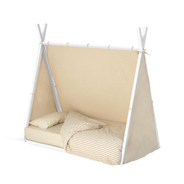 Lassen Sie der Fantasie Ihres Kindes mit diesem Bett aus Buchenholz freien Lauf. Sein Design in Form eines Indianerzeltes soll ihm helfen, Bewegungsfreiheit auf sichere Weise und in seiner Höhe zu finden.