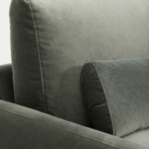 Das Sofa Veliro verbindet die zeitlose Ästhetik der Linienführung der 1950er Jahre mit neuen Proportionen, die darauf ausgelegt sind, in jedem Raum optimalen Komfort zu bieten. Der Veloursbezug mit verwaschener Optik und matter Oberfläche, der zu 20 % aus Baumwolle besteht, ist besonders weich und sehr abrieb- und lichtbeständig. Er ist im Schonwaschgang maschinenwaschbar.